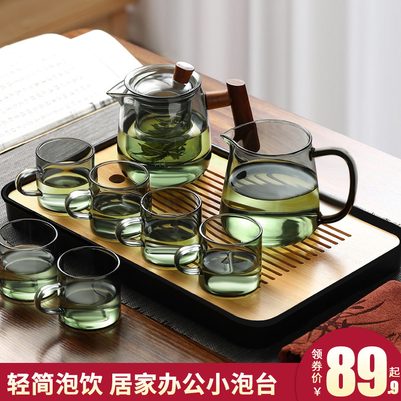 轻奢家用茶盘办公室客厅喝茶功夫茶杯小型耐热泡茶壶玻璃茶具套装