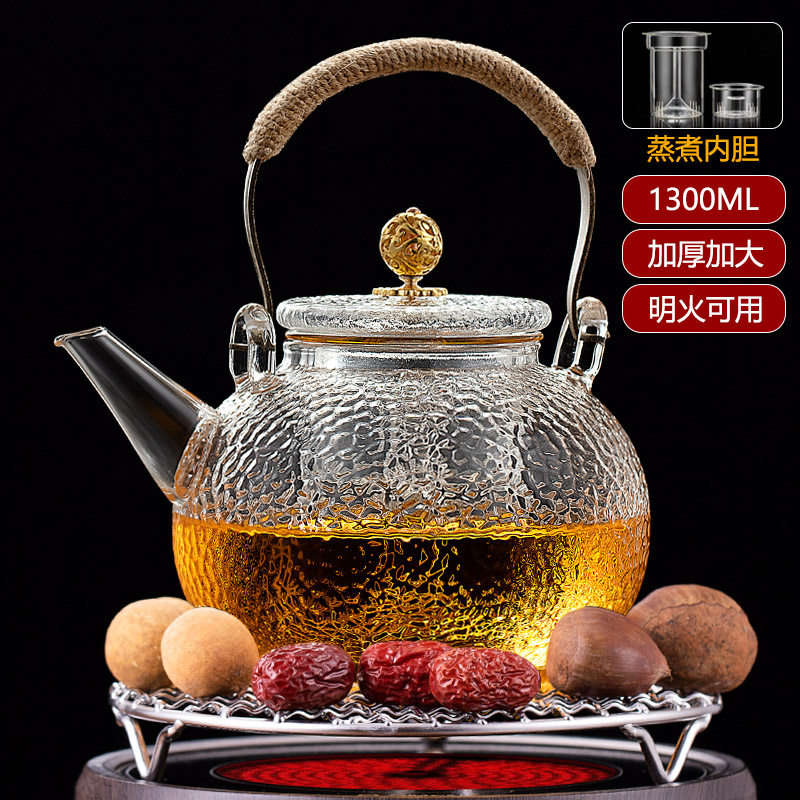加厚锤纹玻璃蒸煮茶壶喷淋式家用电陶炉加热煮茶器提梁烧水壶套装