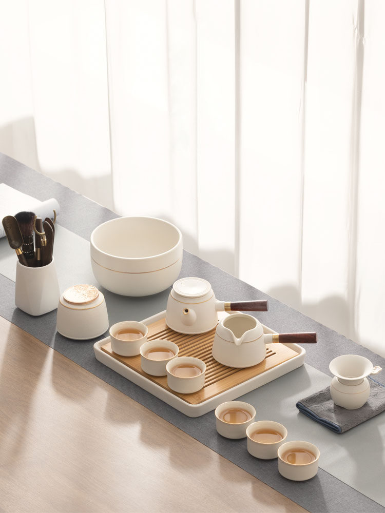 纵欢 草木灰侧把茶壶家用功夫茶具套装客厅陶瓷干泡茶盘轻奢茶器