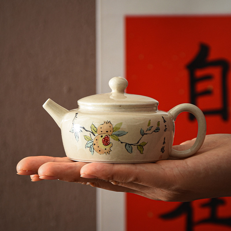 草木灰仿古壶迷你陶瓷单壶防烫一人泡茶小壶日式手绘茶壶功夫茶具
