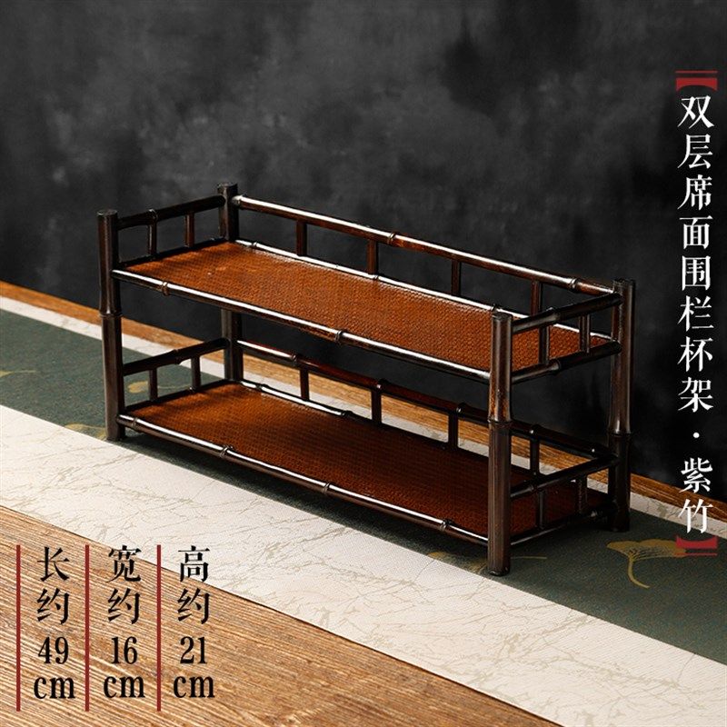 紫竹席面双层茶杯架 竹制茶壶收纳架席面晾杯架 茶具置物架展示架