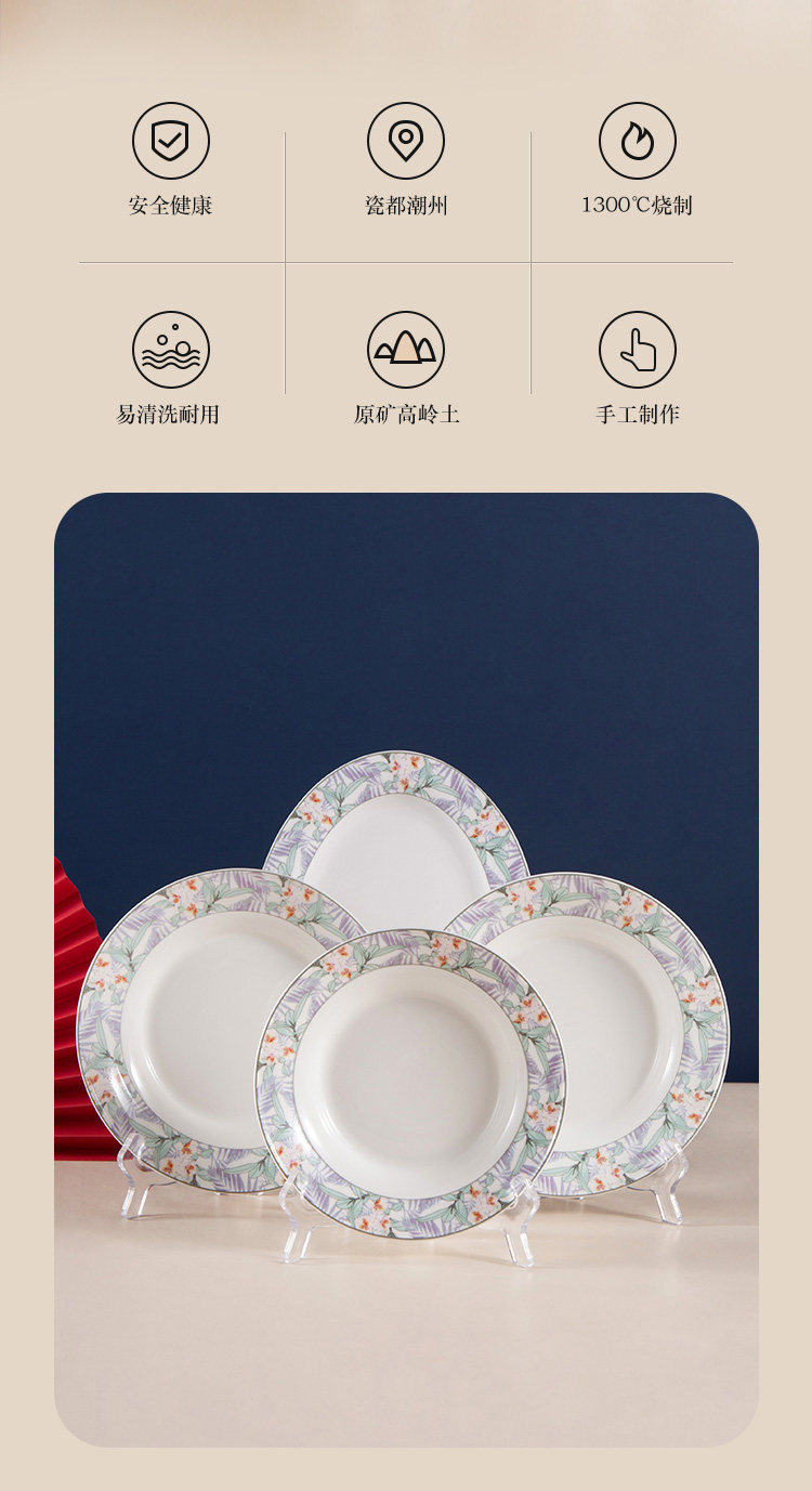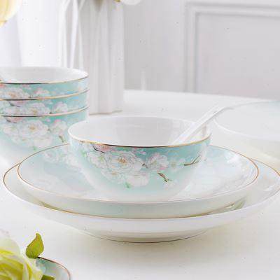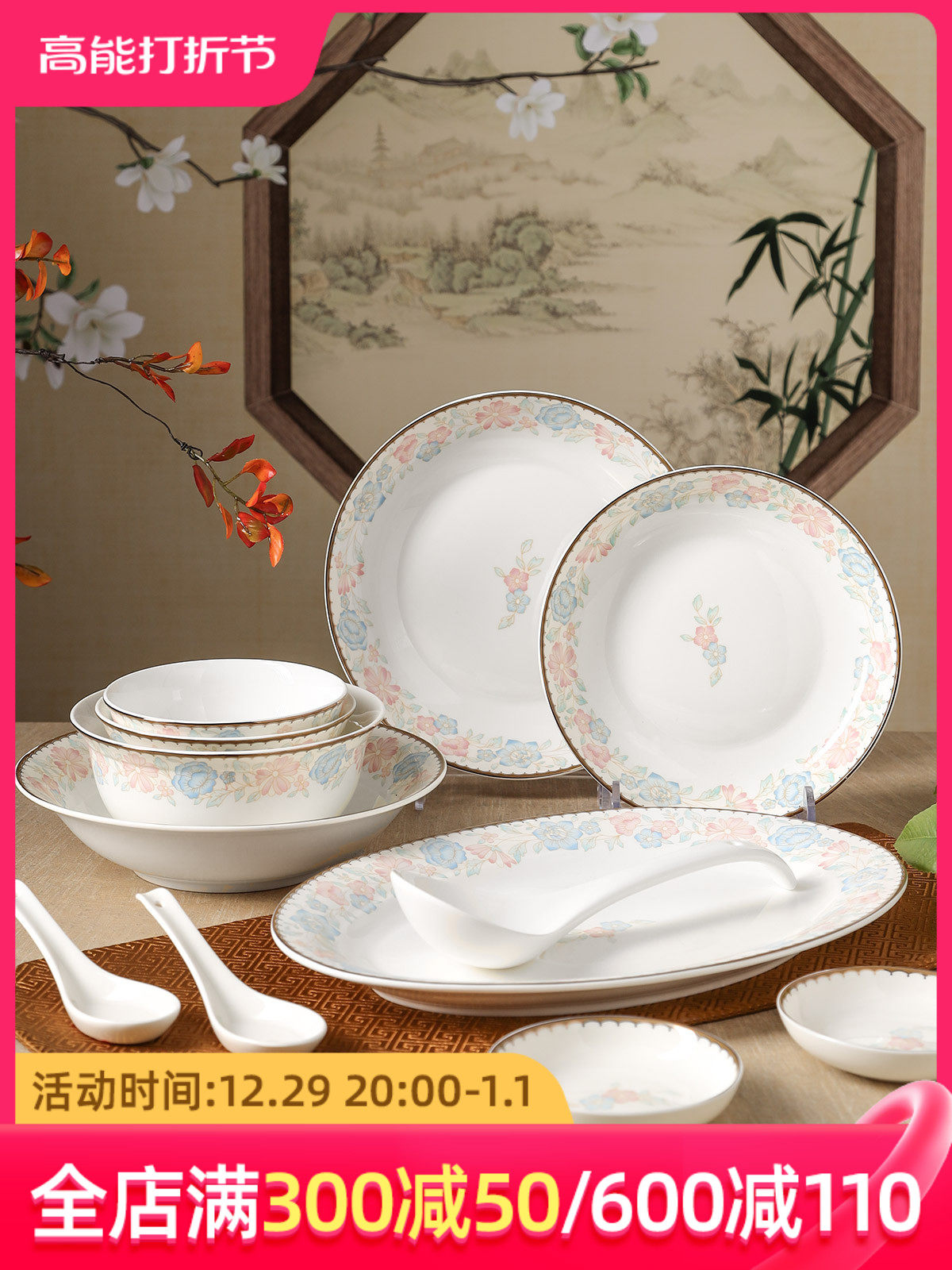定制松发陶瓷餐具花香随行中式碗盘套装家用陶瓷碗碟乔迁送礼套装