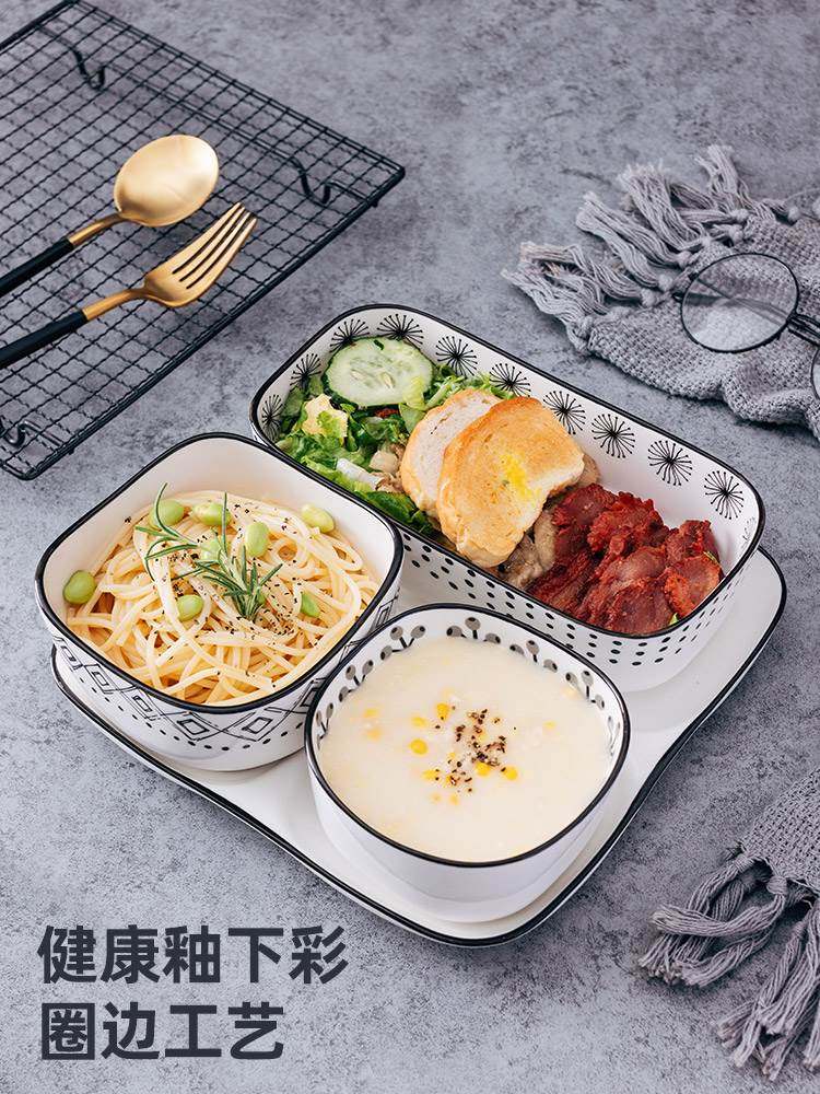 陶瓷分格餐盘211减脂餐盘大人定量早餐盘子餐具家用分隔餐盘