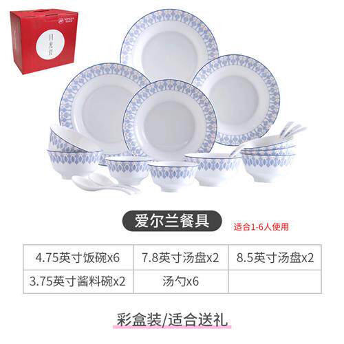 松发瓷器18头爱尔兰中式碗盘餐具家用送礼碗碟组合套装佳品 爱尔