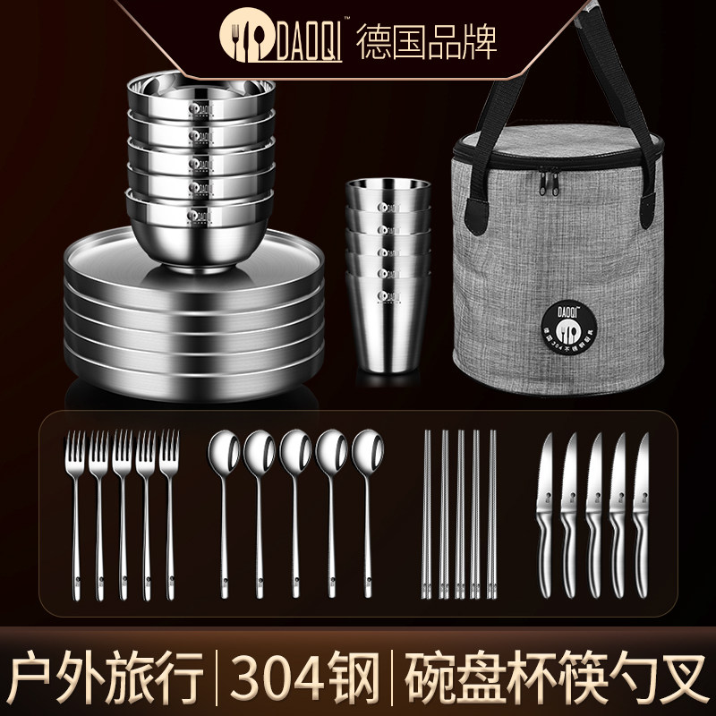 岛奇不锈钢户外餐具便携碗筷套装旅行露营野餐装备用品自驾游野营