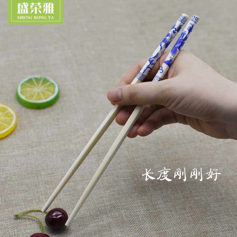 一次性筷子饭店加长青花瓷火锅筷快餐具独立碳化竹筷家用商用整箱