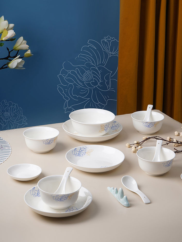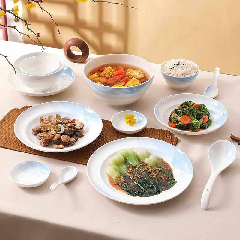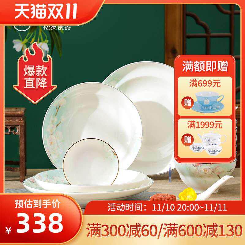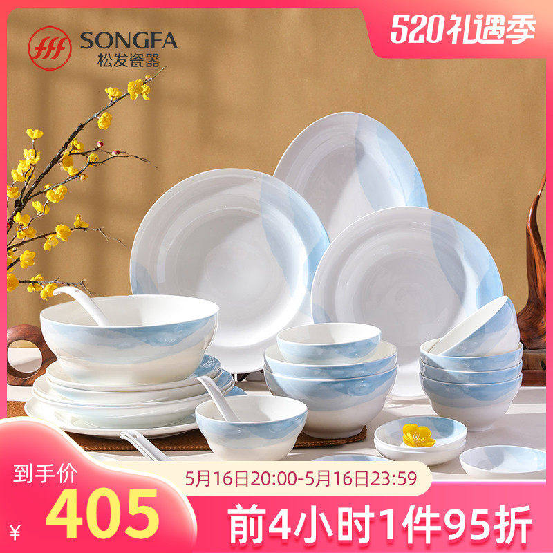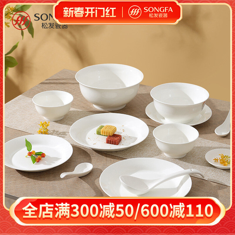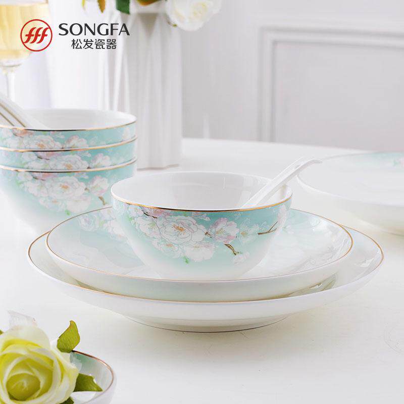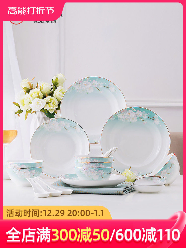松发瓷器 陶瓷餐具松发瓷器碗碟套装家用陶瓷餐具中式简约碗盘组