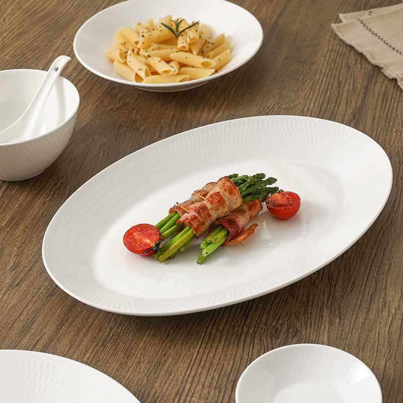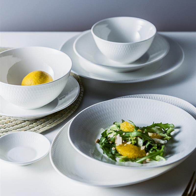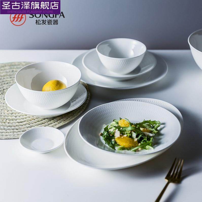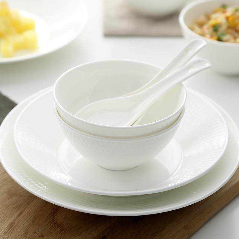 松发陶瓷精品家用碗盘碟餐具纯白暗纹系列组合碗盘