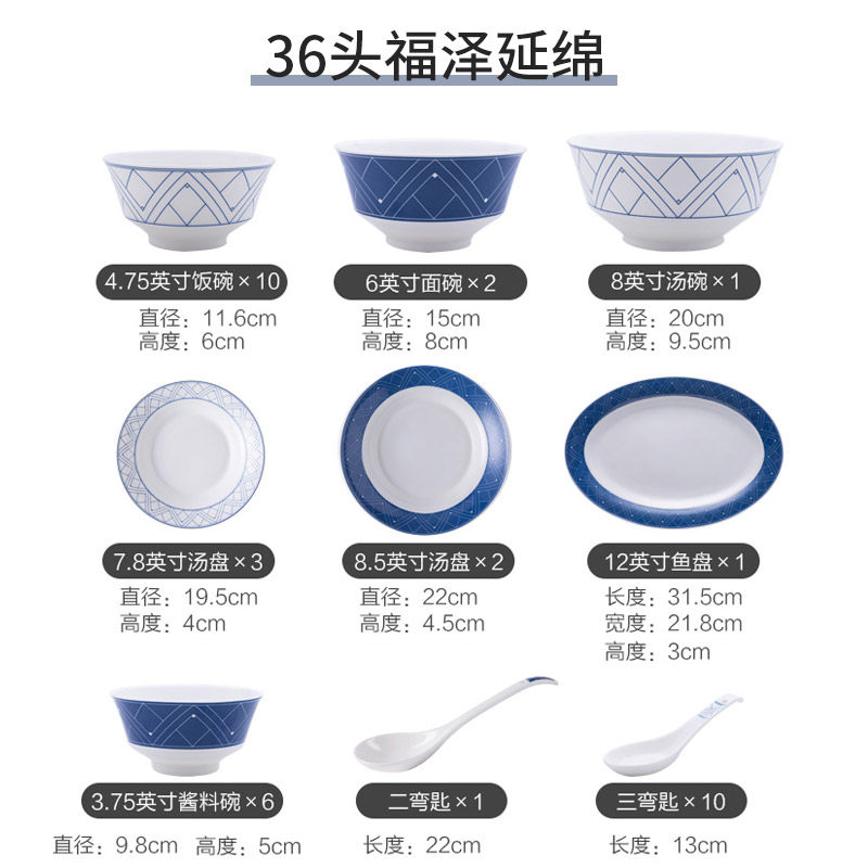 松发瓷器36头碗碟套装家用盘子碗陶瓷碗盘餐具乔迁送礼组合