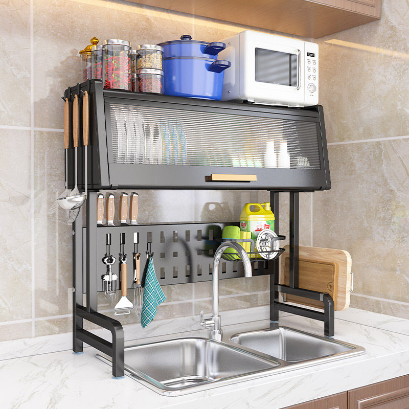 厨房水槽置物架碗架沥水架带门台面碗碟碗盘收纳架碗柜收纳餐具柜