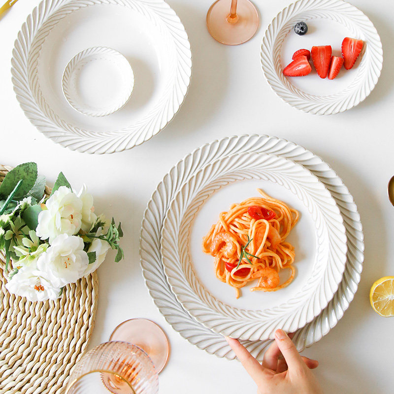 松发陶瓷精品家用碗盘碟餐具纯白浮雕暗纹系列组合碗