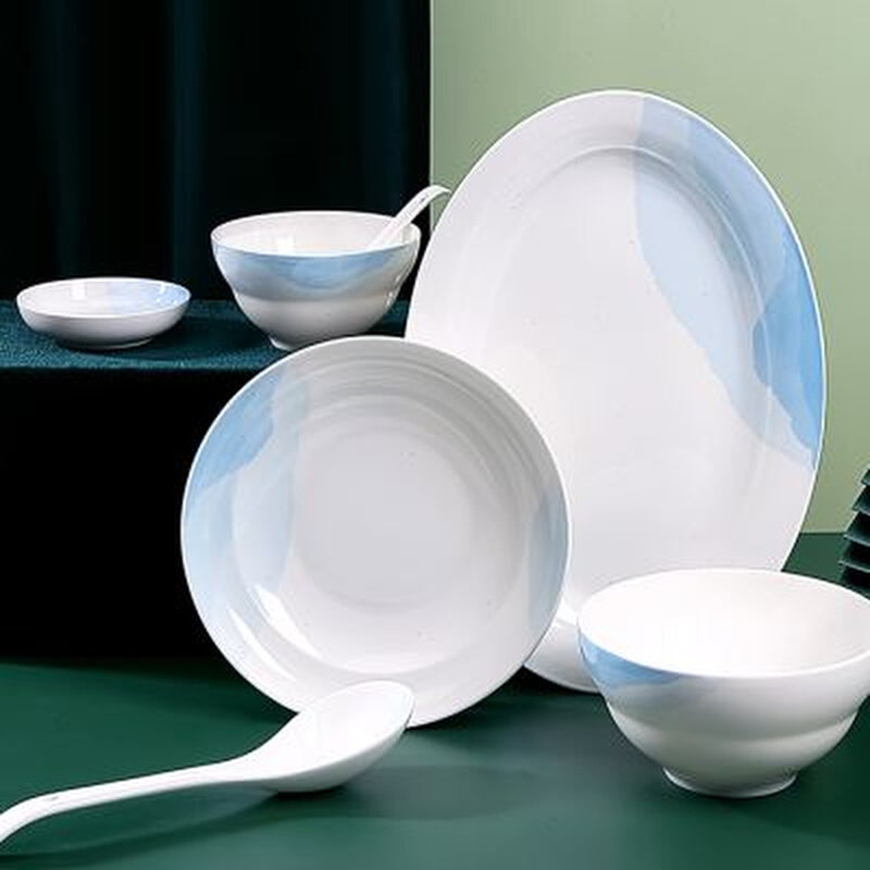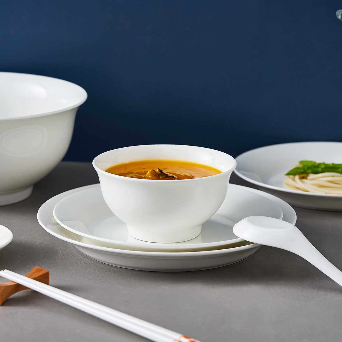 松发瓷器碗碟套装月光瓷餐具陶瓷碗碟家用简约纯白碗盘组合