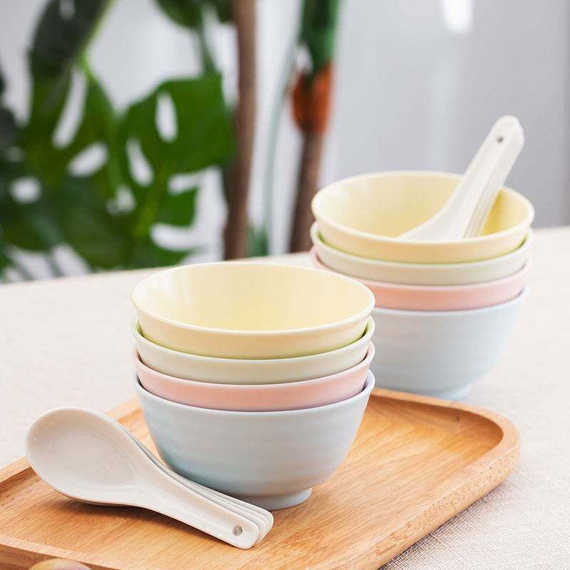 松发瓷器釉下彩波纹马克龙8碗8勺餐具碗套组日式家用陶瓷米饭碗