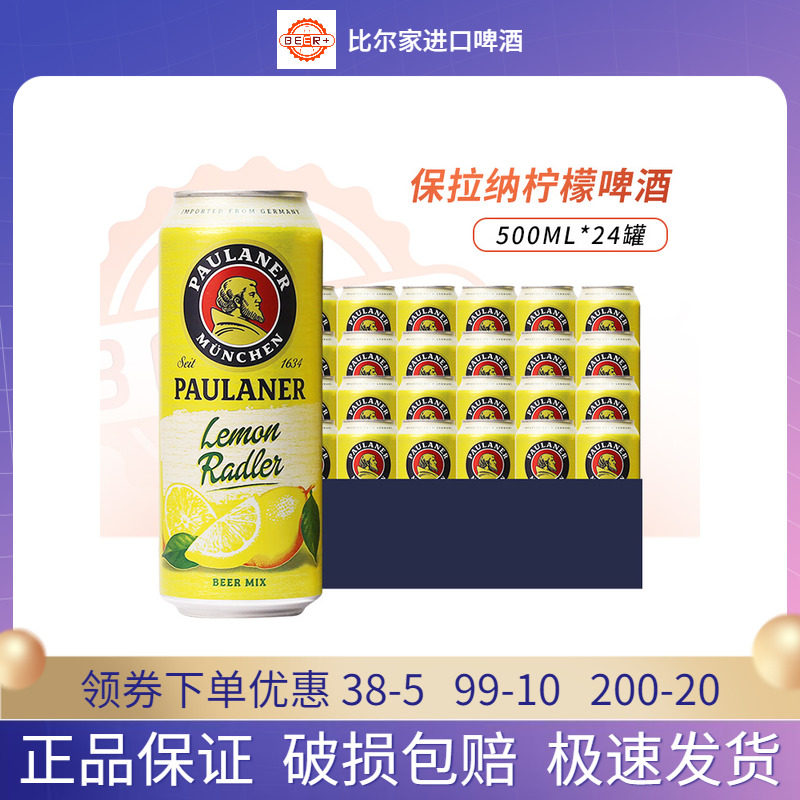 paulaner保拉纳/柏龙 柠檬拉德乐啤酒500ml*24听箱装德国原装进口