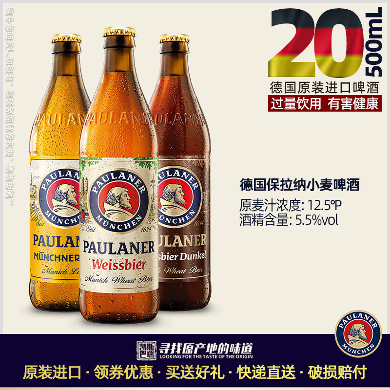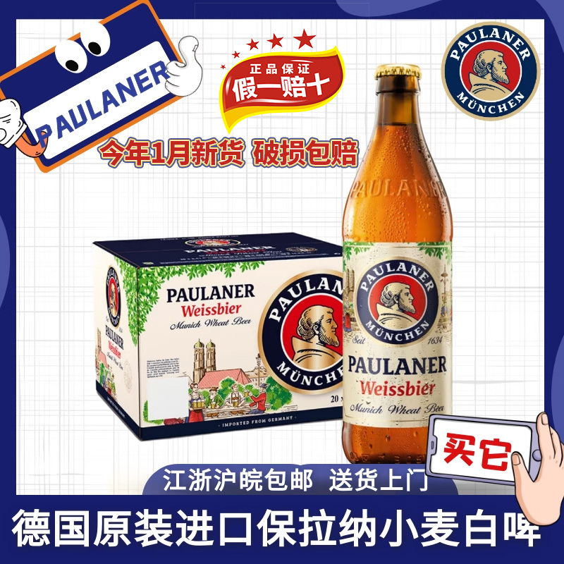 整箱德国进口柏龙啤酒500ml*20瓶装Paulaner保拉纳小麦白啤酒促销