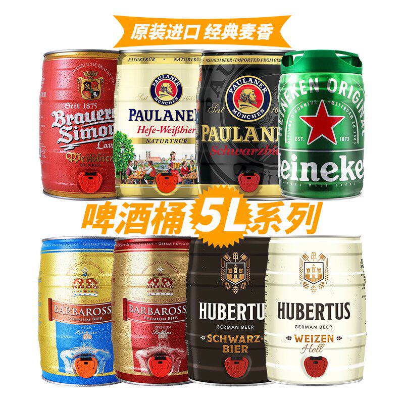 5L桶装啤酒德国保拉纳柏龙浅粉象桶铁金刚百帝王沃斯坦5L桶