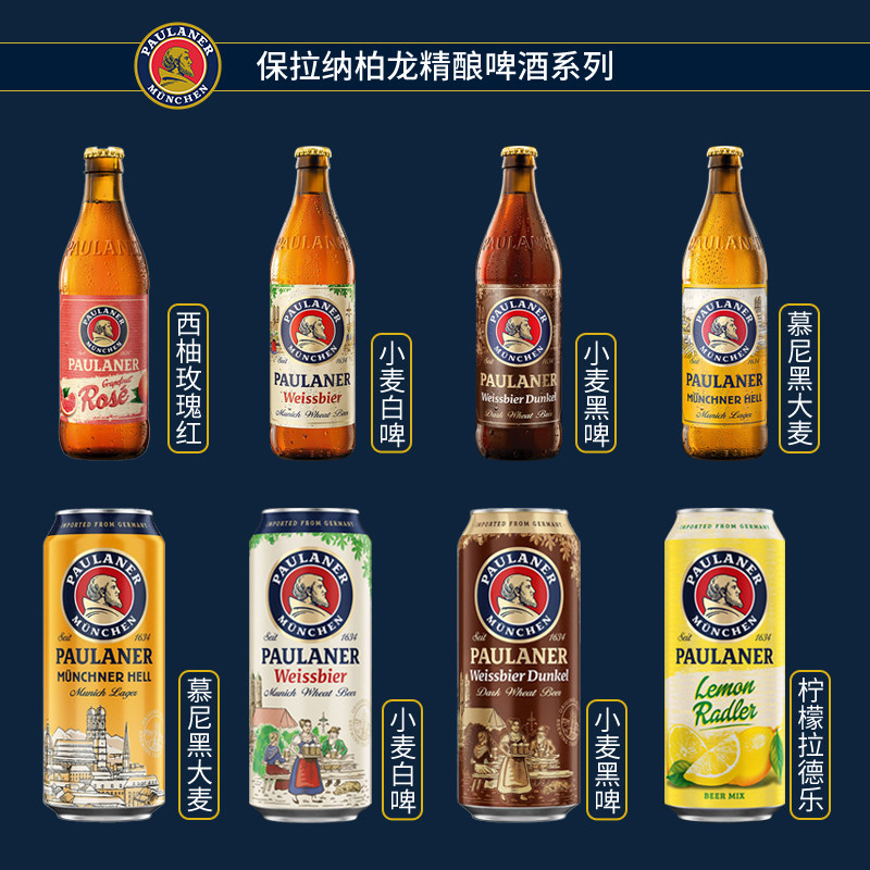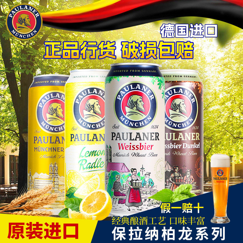 整箱德国paulaner保拉纳柏龙小麦白/黑/柠檬拉格啤酒宝莱纳500ml