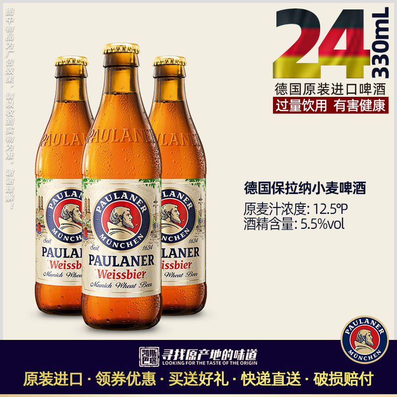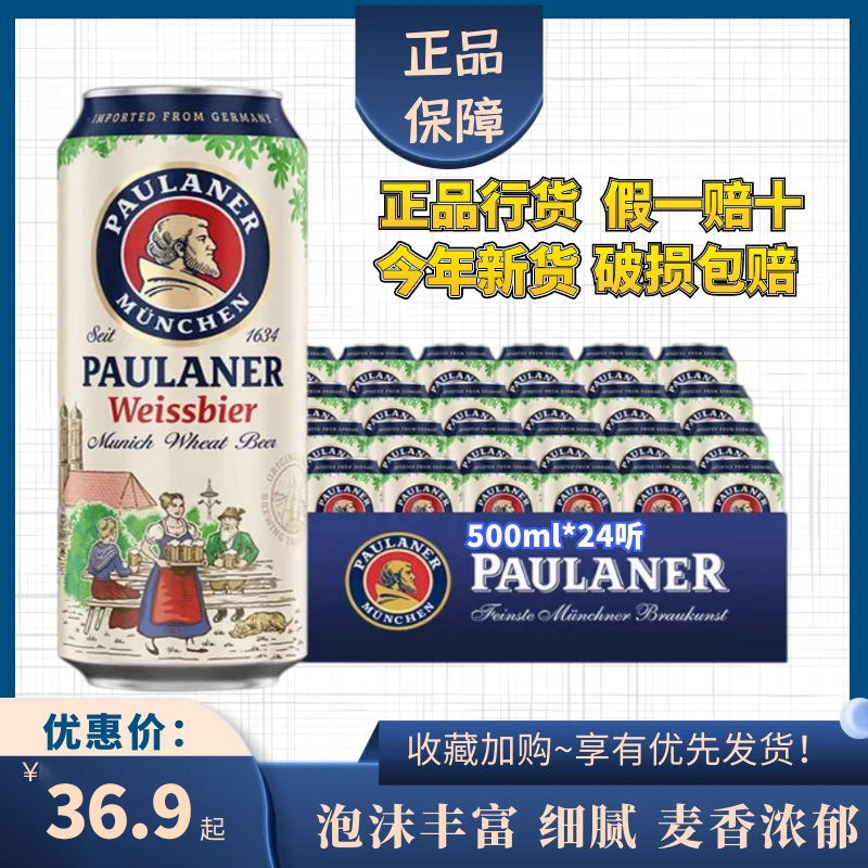 24听装德国进口柏龙白保拉纳白啤酒宝莱纳白paulaner小麦啤酒原装