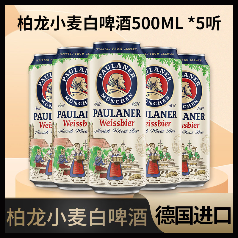 5听 德国进口柏龙白保拉纳白啤酒 宝莱纳白paulaner小麦听装啤酒