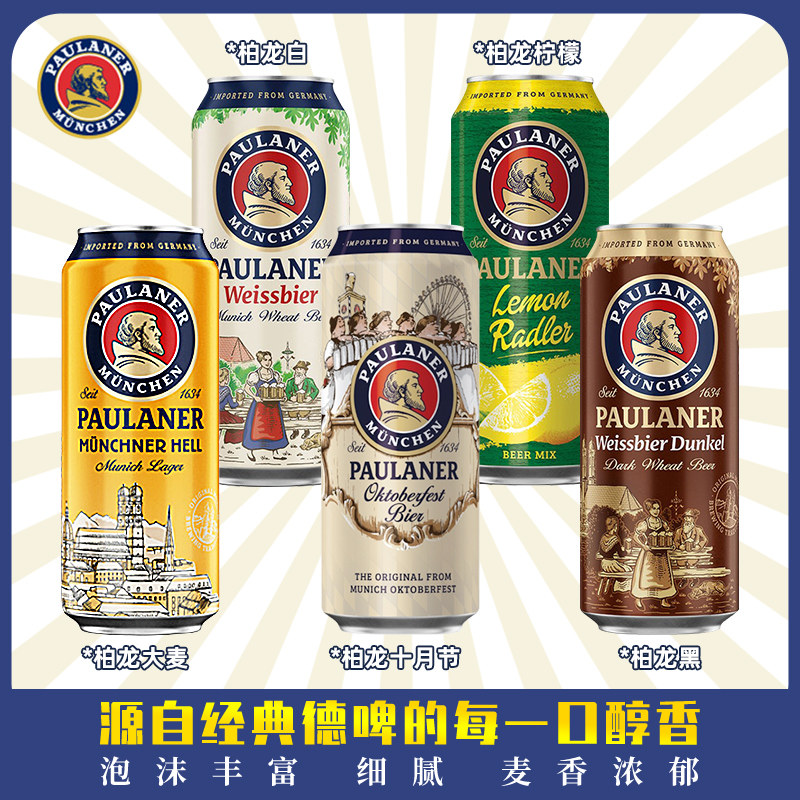 德国进口paulaner保拉纳啤酒柏龙小麦白啤黑啤500ml*24罐听装正品