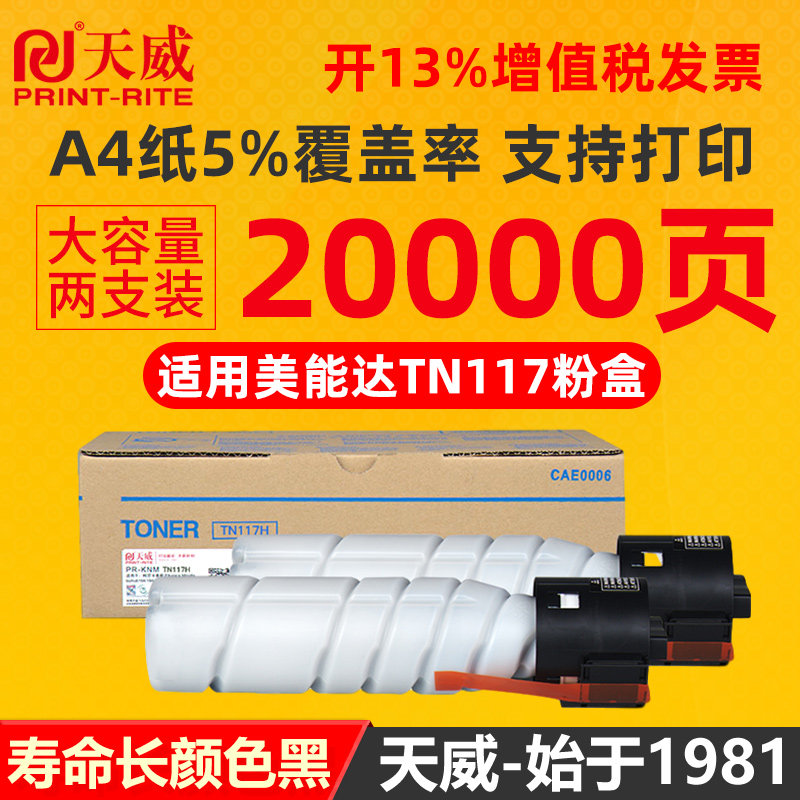 适用柯尼卡美能达TN117H碳粉bizhub 185 164 184 185e黑色墨粉7718 7818 7228 柯美 天威黑白复印机碳粉盒