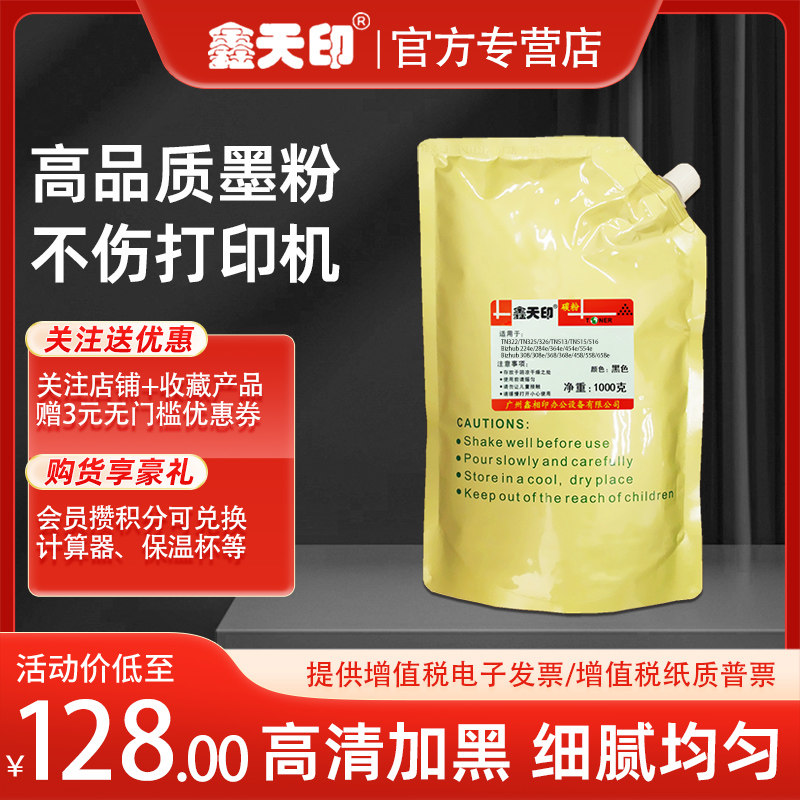 鑫天印适用柯尼卡美能达224e 284e 364e碳粉TN322粉盒添加粉Bizhub 284 364复印机墨粉黑色粉1000克袋装粉