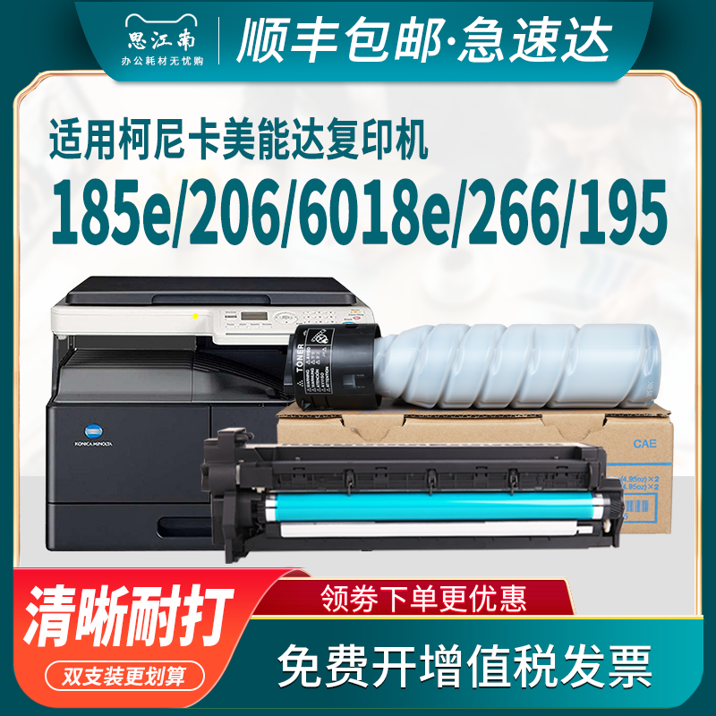 【顺丰】适用柯尼卡美能达185e粉盒206 205i 195硒鼓6180e套鼓266 226 246 184 235 7818e复印机tn117碳粉119