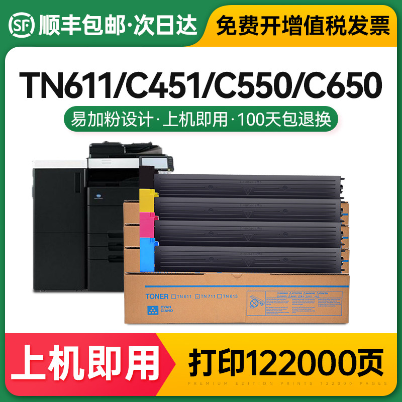 京呈适用柯美打印机TN611粉盒柯尼卡美能达Bizhub C451 C452 C551 C552 C650 C652彩色打印机墨粉复印机碳粉