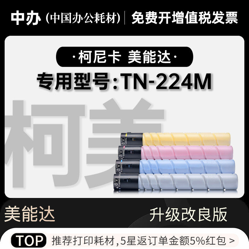 柯尼卡美能达 TN-224M彩色黑白激光打印机专用正品硒鼓碳粉仓墨盒