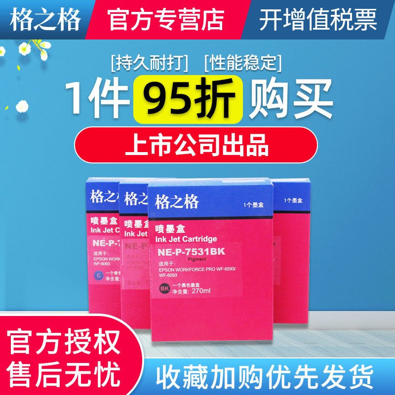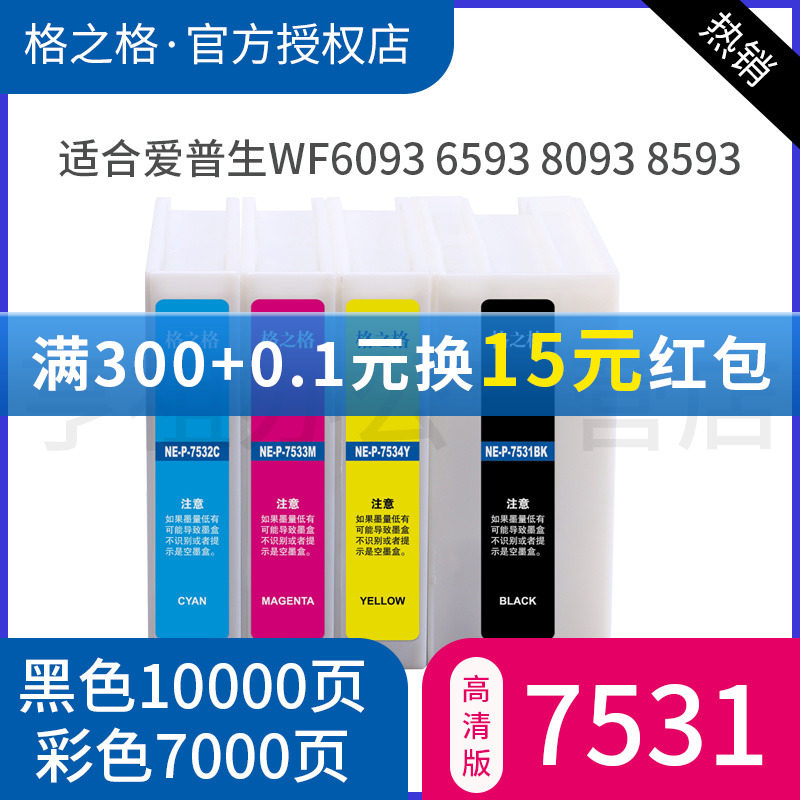 格之格墨盒适用爱普生T7531 T7532 T7533 T7534 WF-8093 8593 6093 6593墨盒 WORKFORCE WF-6093打印机