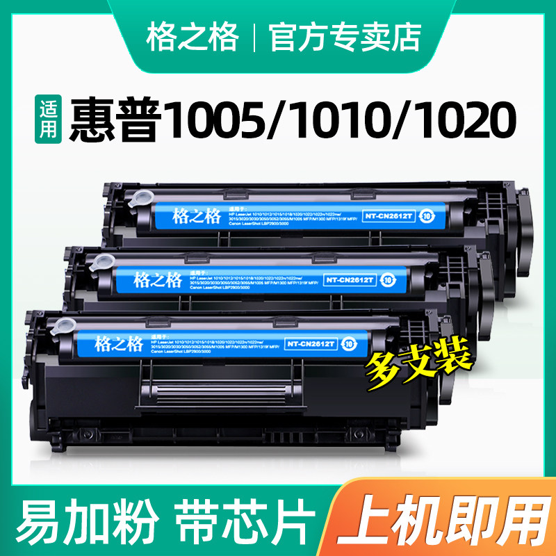 格之格适用惠普1005硒鼓HP12A HP1020易加粉HP1005 HP1020plus HP1010 HP1018 m1005mfp打印机墨盒Q2612A硒鼓