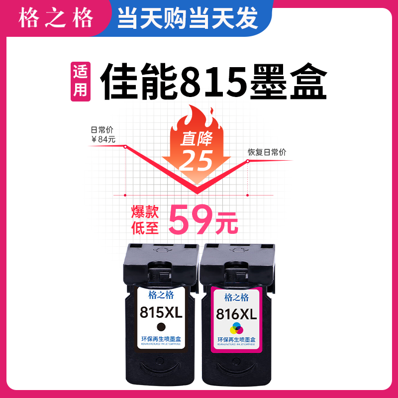 格之格适用佳能815墨盒mp288墨盒 ip2780 mp236 mp259黑色CL816彩色可加墨canon打印机 ip2788 mp498 mx348