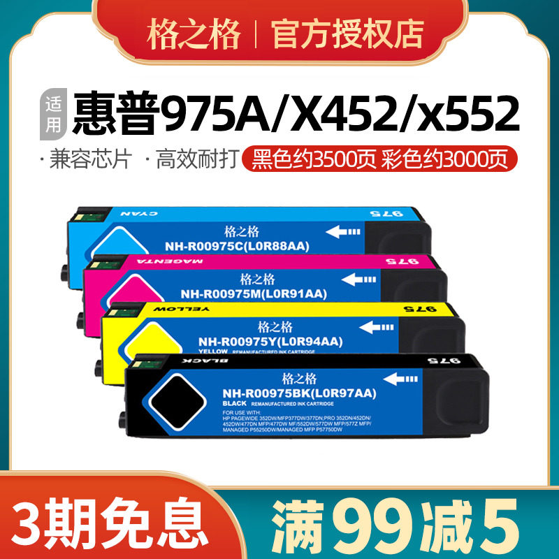 格之格适用hp975A墨盒 惠普Pro 452dn 452dw 477dn/dw MFP 552dw 577dw/z P57750dw P55250dw HP975XL墨水盒