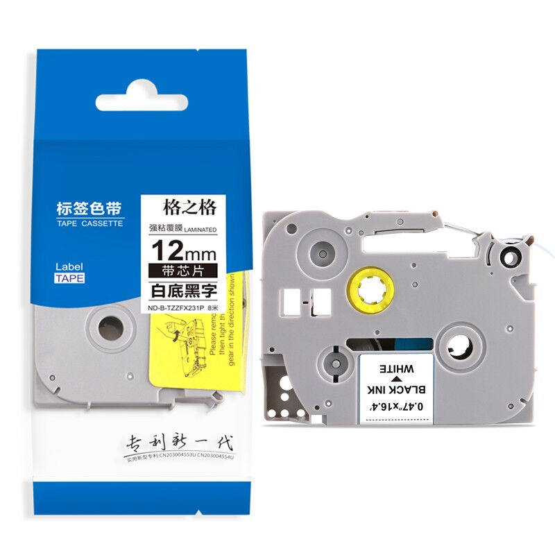 格之格TZZ231P带芯片标签色带适用兄弟PT-E115标签打印机色带12mm