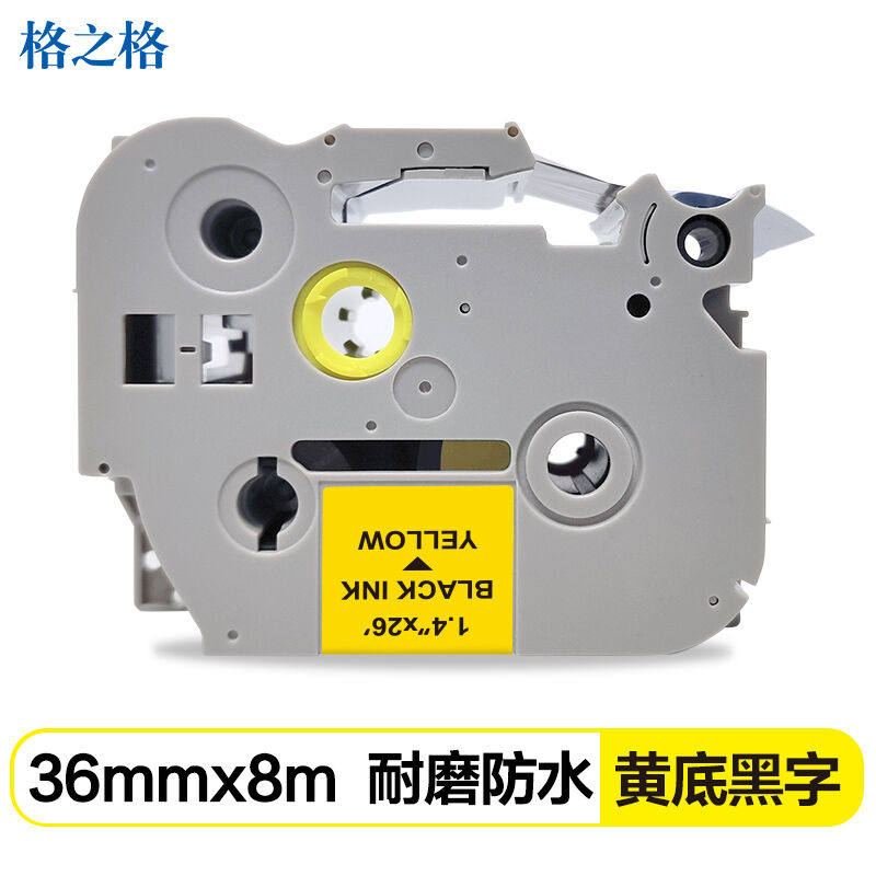 格之格标签色带适用兄弟标签机色带36mm*8米TZe-661黄底黑字标签
