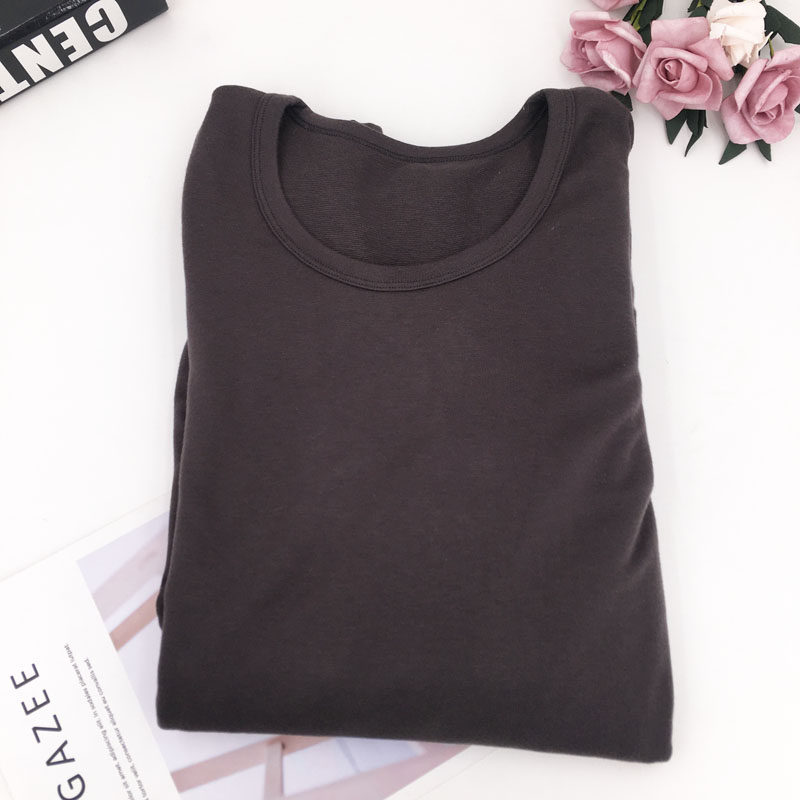 桑扶兰保暖内衣女v领蕾丝薄款上衣加绒一体绒长裤黑色秋衣裤ECI05