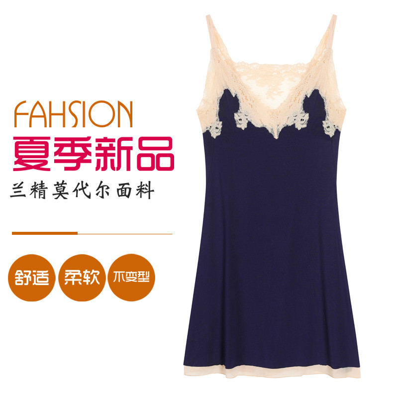 桑扶兰正品夏季薄款性感无袖v领吊带裙莫代尔睡裙舒适家居服FBG07