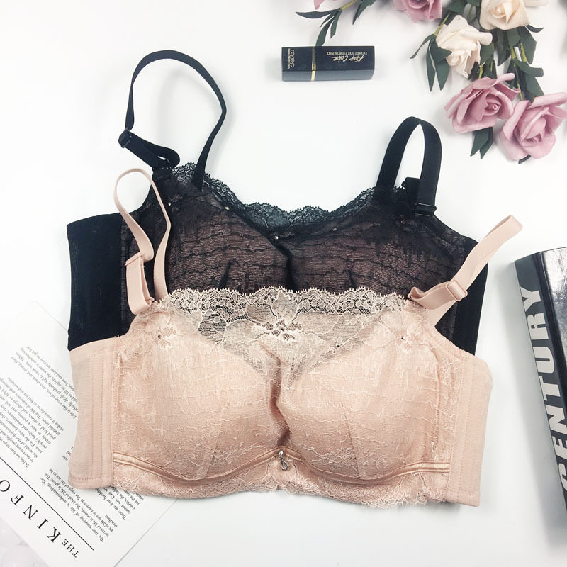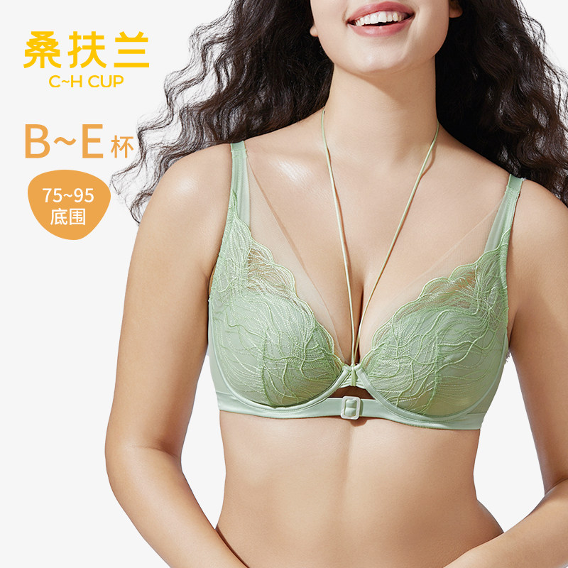 桑扶兰大码文胸胖mm大胸显小超薄蕾丝聚拢收副乳防下垂单层内衣女