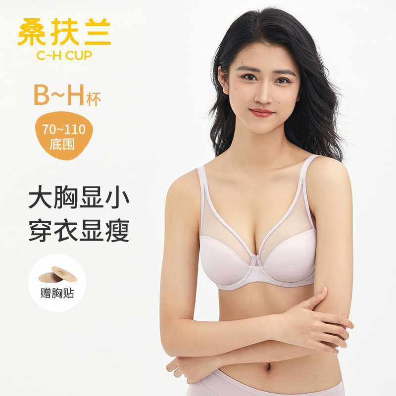 桑扶兰大胸显小薄款双排扣圆润饱满显瘦软钢圈大胸内衣胸罩女