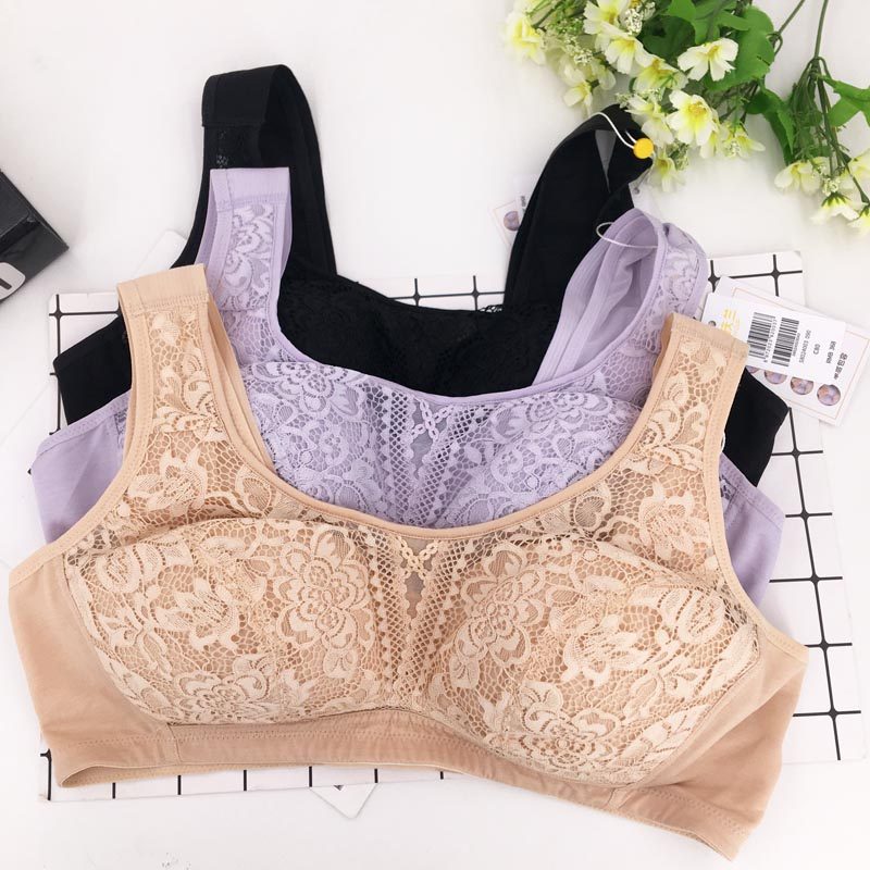桑扶兰无钢圈文胸大胸显小收副乳蕾丝薄款胸罩背心式防下垂内衣女