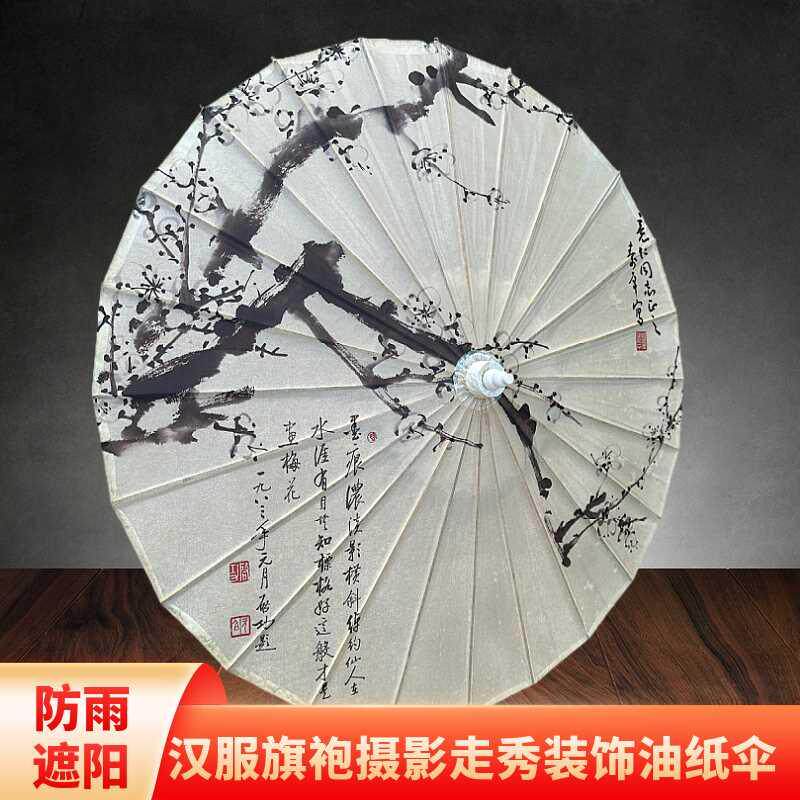 定制石鼓油纸伞水墨梅花防雨遮阳古风汉服旗袍道具走秀工艺伞装饰