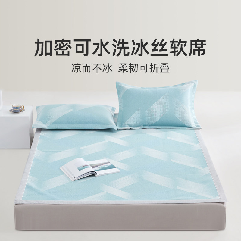 梦兰家纺冰丝软席三件套可折叠可水洗夏1.51.8米凉席套件2023新款