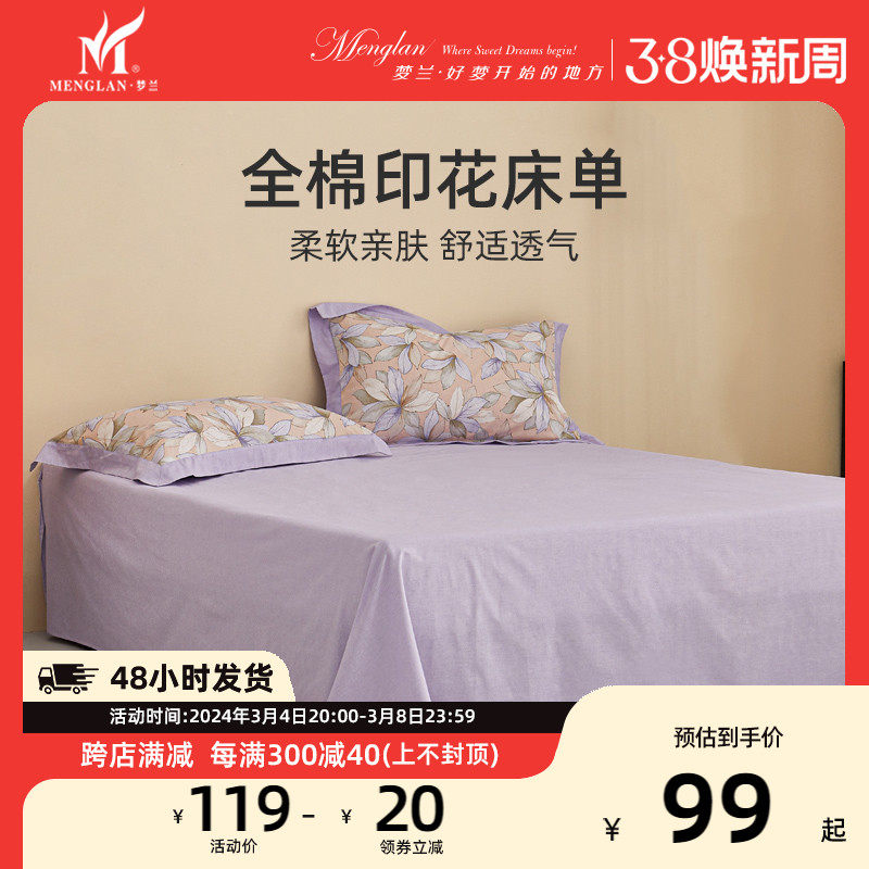 梦兰家纺纯棉床单单件秋冬100%全棉被单单双人学生宿舍床上用品