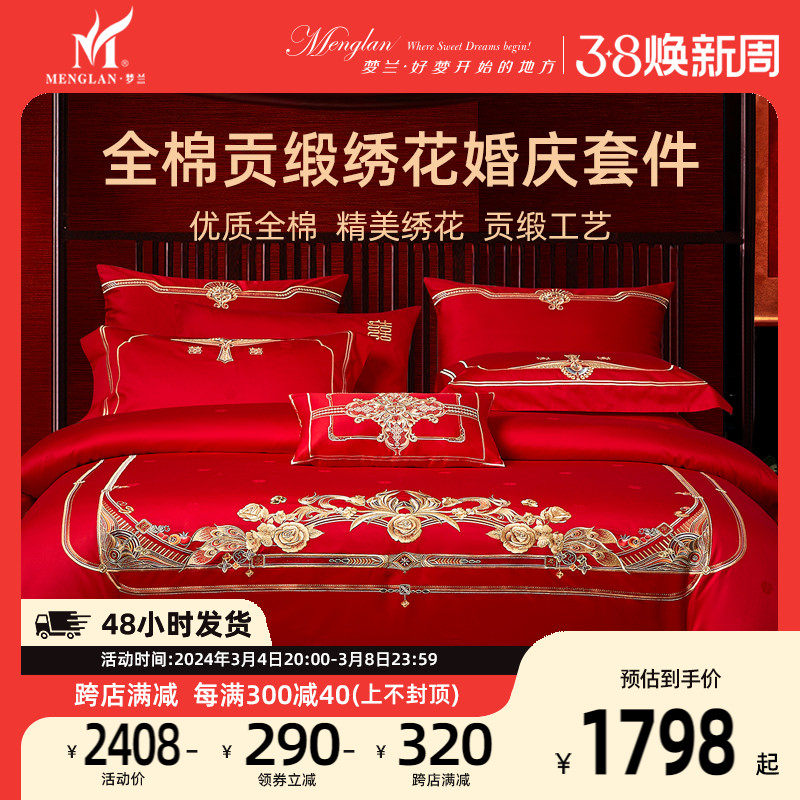 梦兰家纺提花绣花床单款套件套婚庆大红套件双人大床六件套