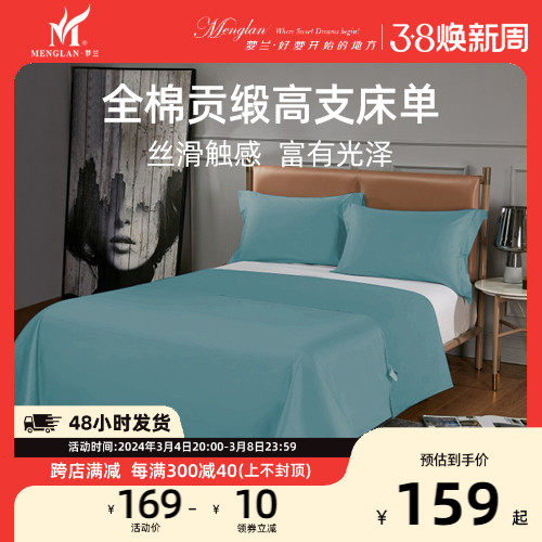 梦兰家纺全棉贡缎高支床单单双人床简约纯色