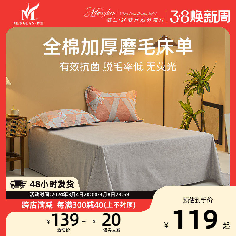 梦兰家纺全棉炽暖抗菌床单床品单件学生单人宿舍双人纯棉保暖床单