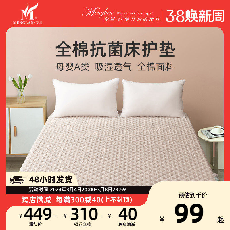 梦兰家纺净棉透气抗菌床笠全棉家用宿舍单双人床护垫床褥子床笠款