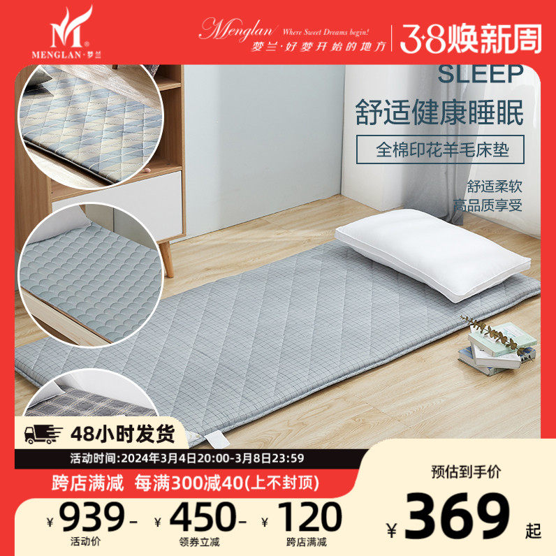梦兰家纺羊毛床垫可折叠床褥单双人四季床护垫分层榻榻米床垫子