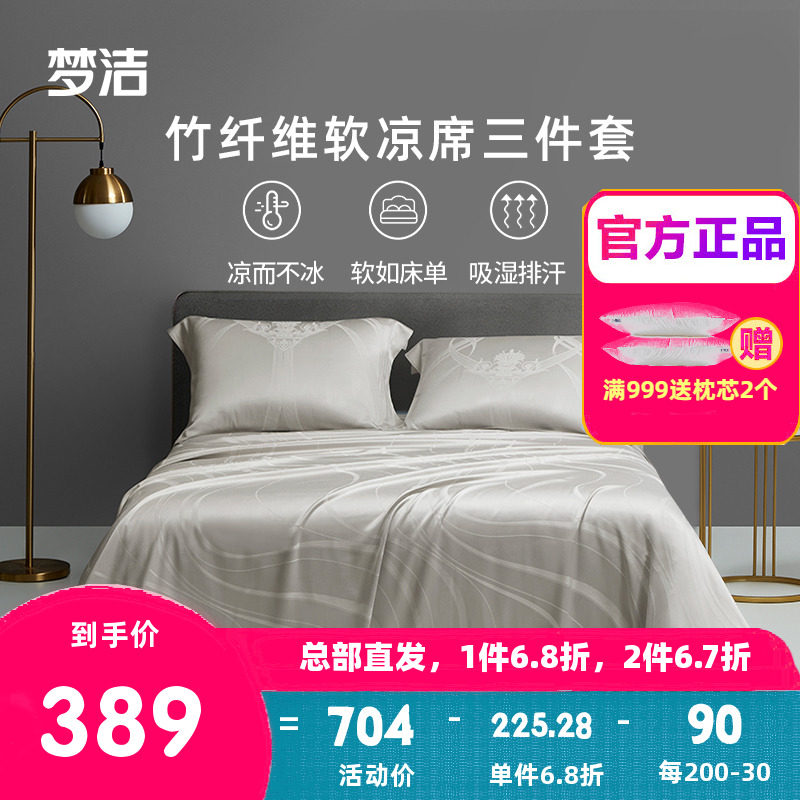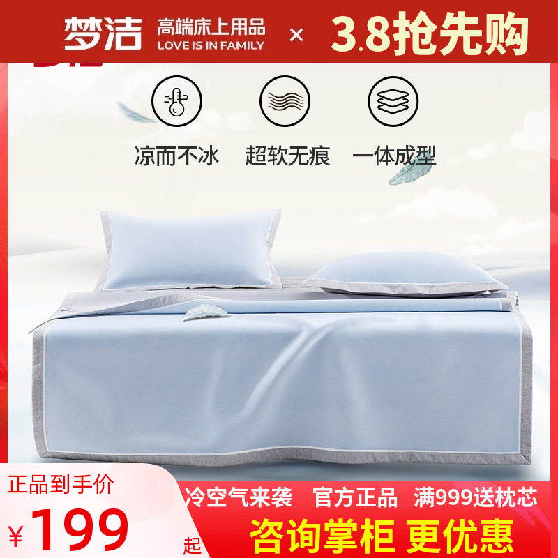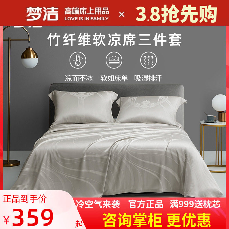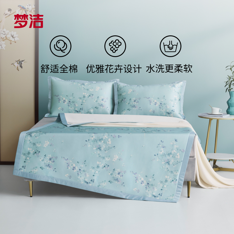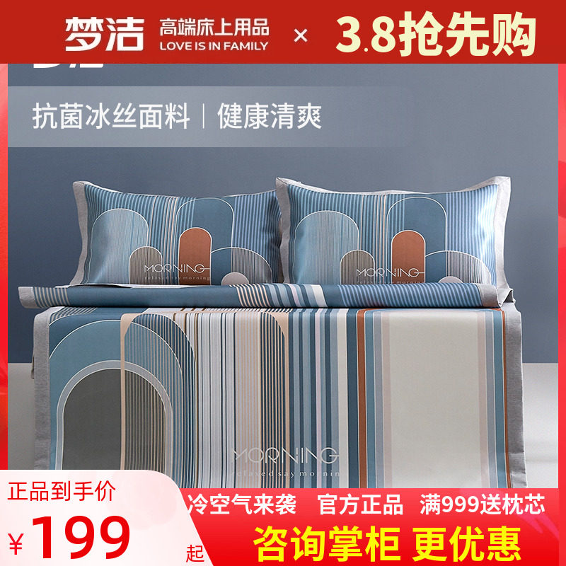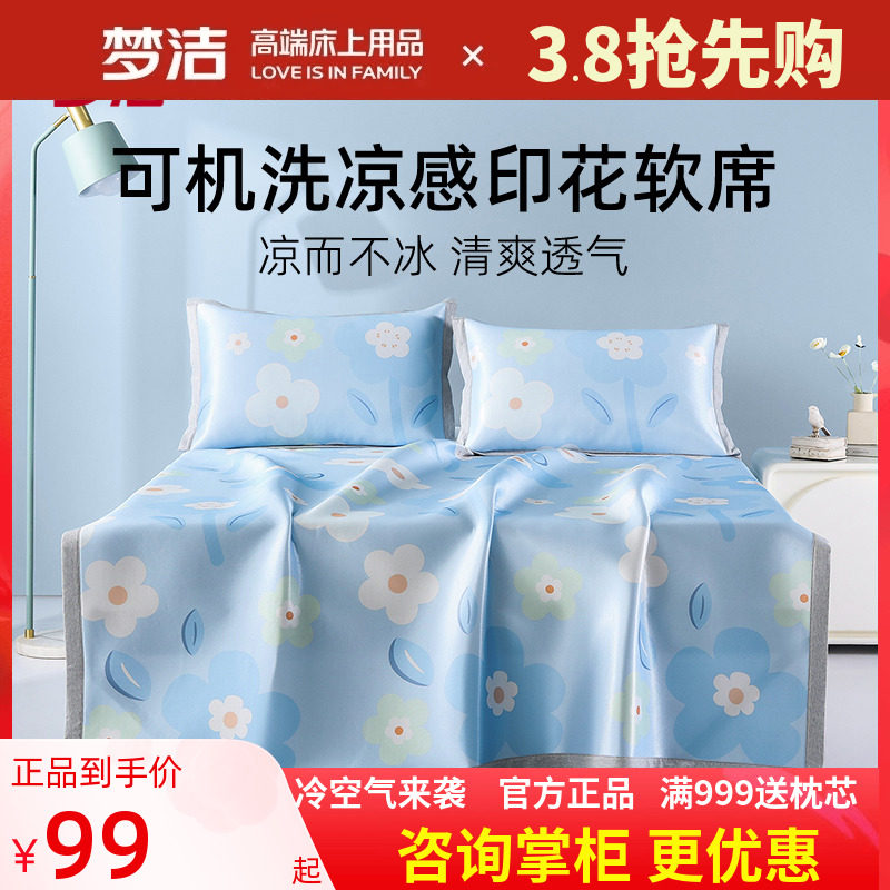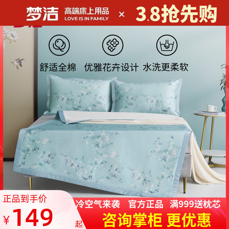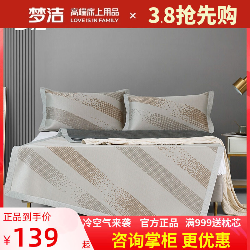 梦洁家纺官方旗舰店正品官网提花冰丝空调软凉席三件套夏季1.5m1.