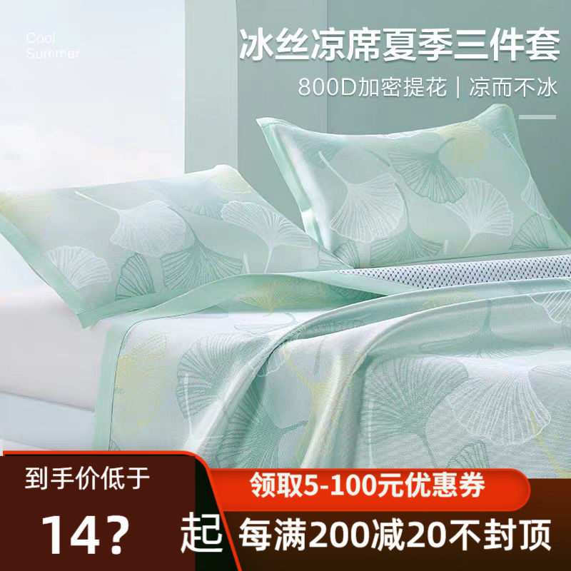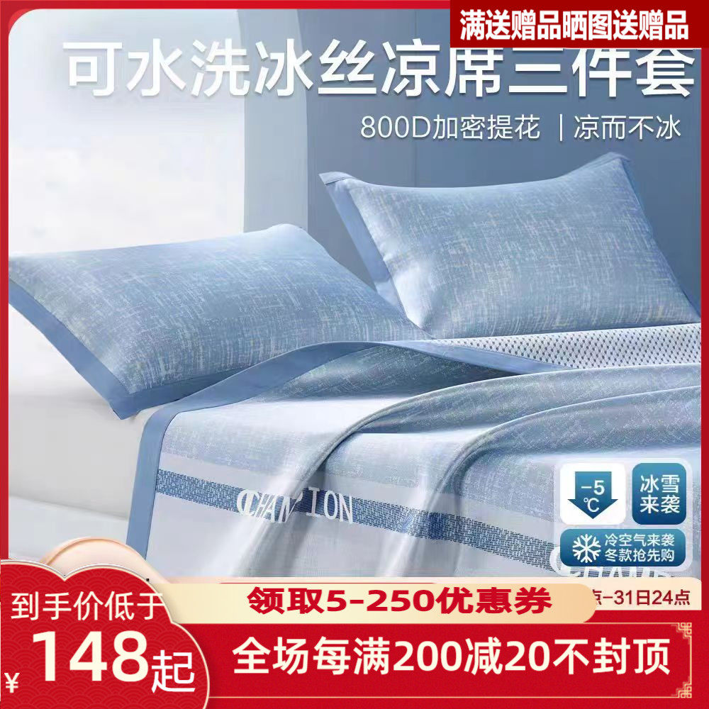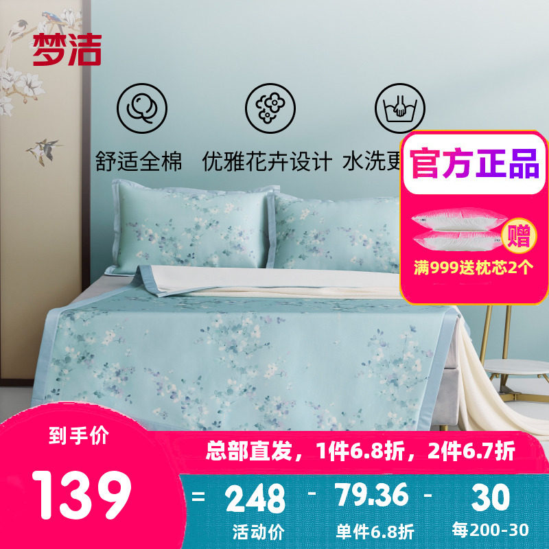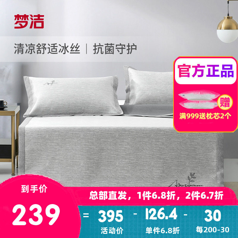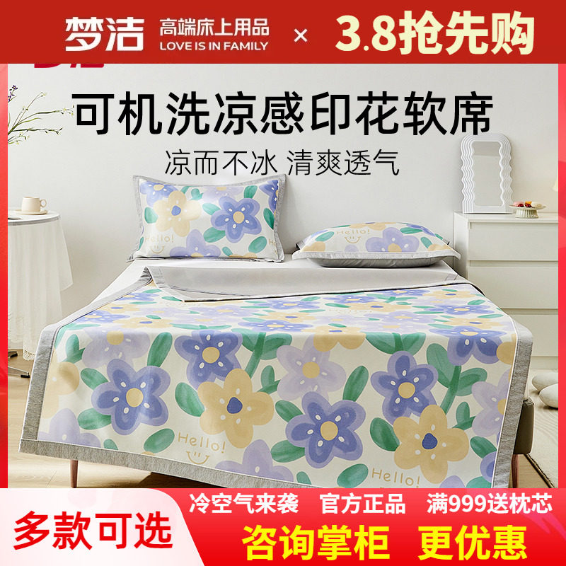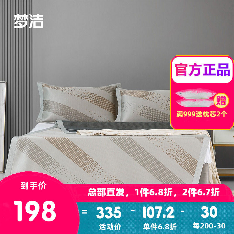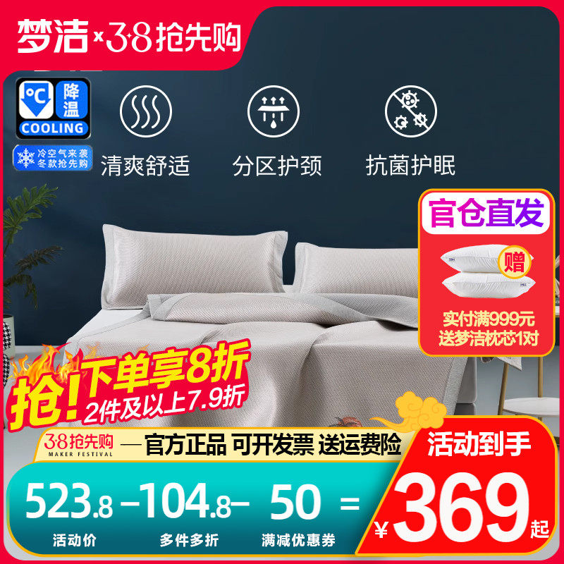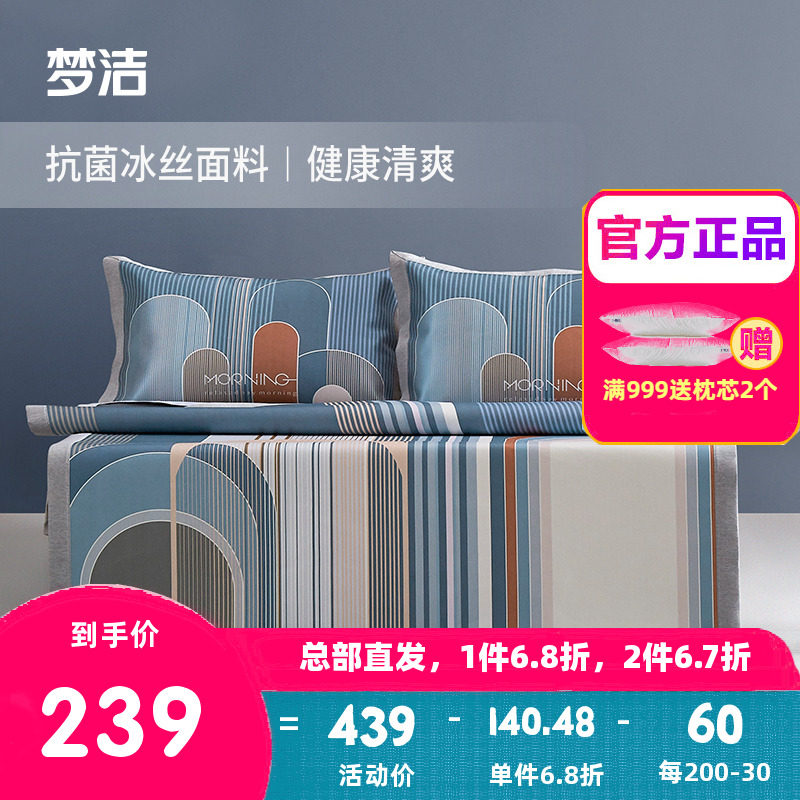 梦洁家纺官方旗舰店正品官网提花冰丝空调软凉席三件套夏季1.5m1.